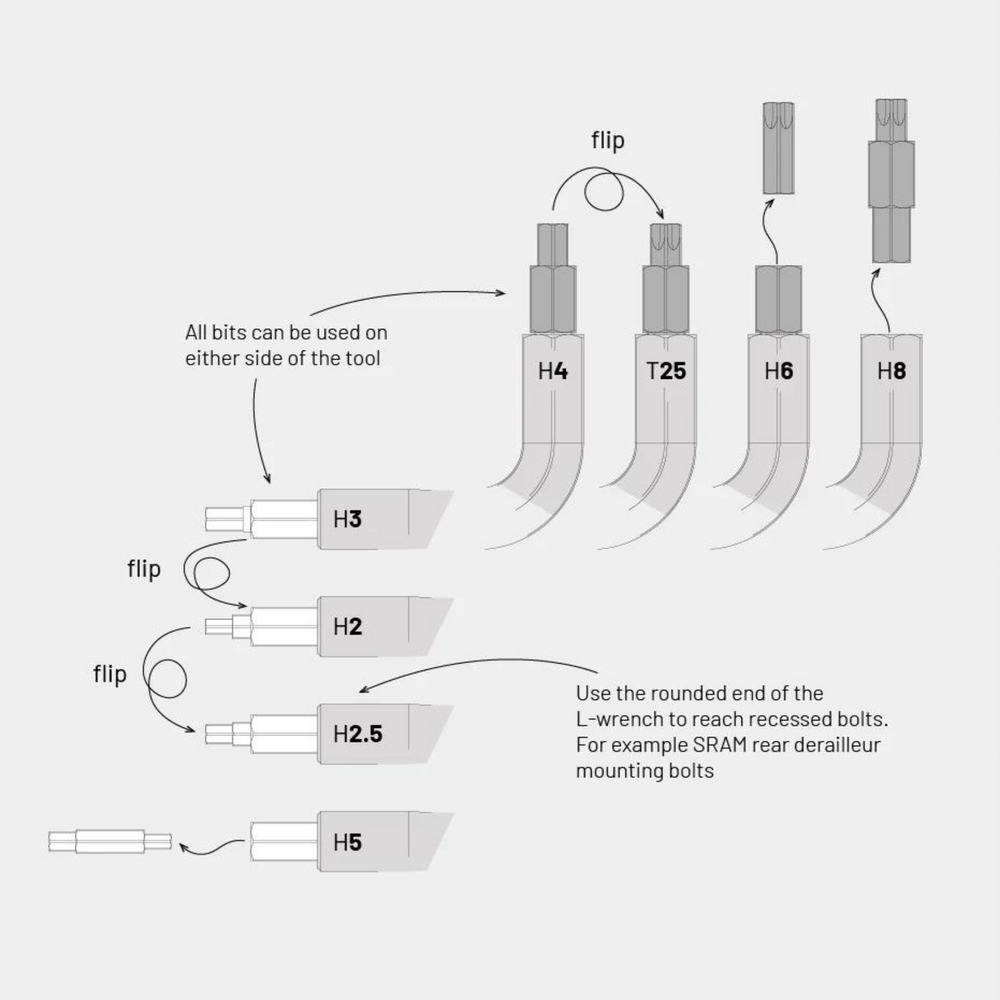 Weighing just 33 grams and boasting the compact form factor of an allen key, this versatile tool is ready for action. It can effortlessly fit into your pocket, whether it's your pants or jersey pocket. Crafted from corrosion-resistant stainless steel and built with Swiss engineering precision, this astonishingly lightweight multitool is designed to endure all your biking.
